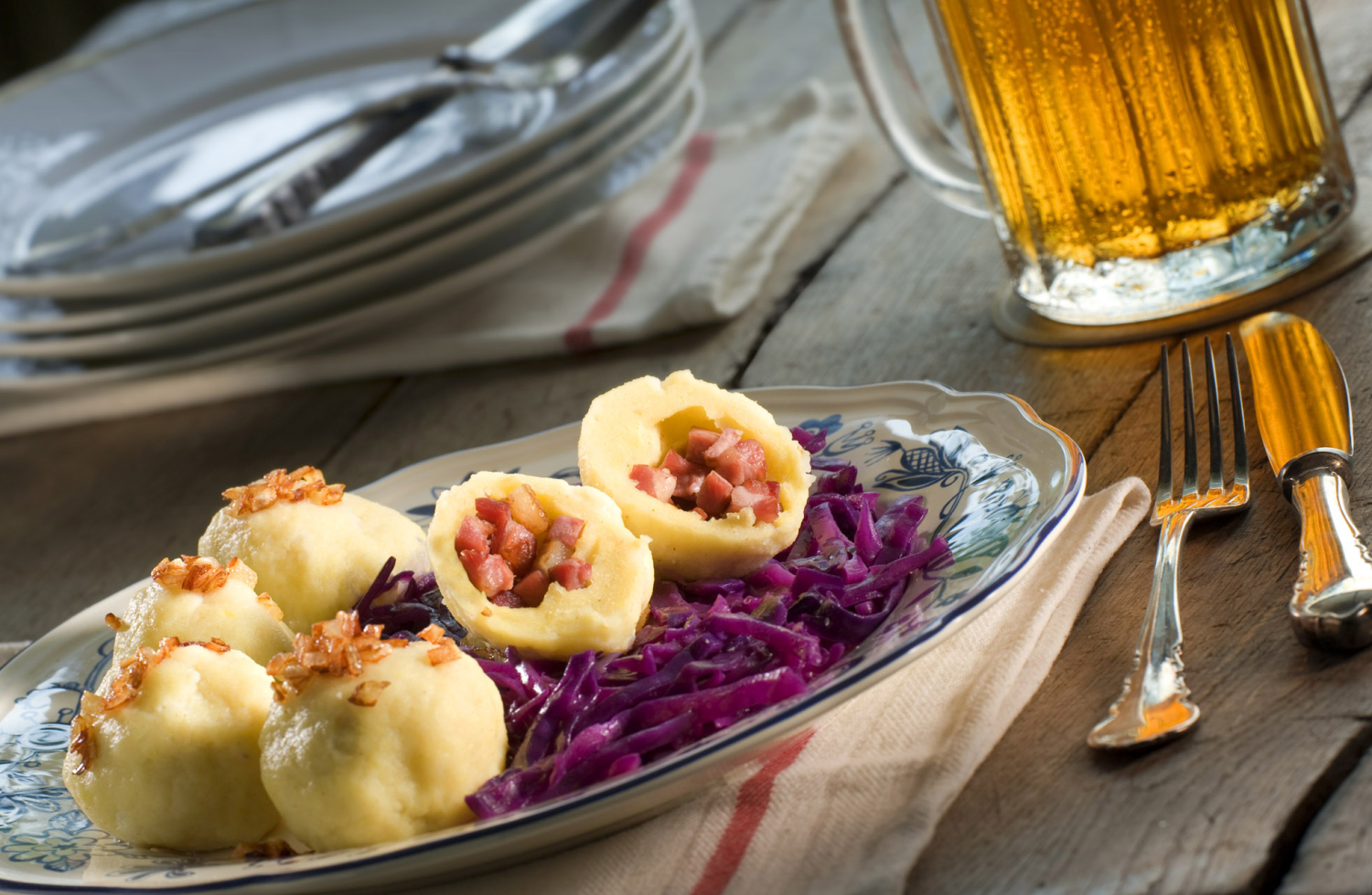 Brambory uvaříme ve slupce nejlépe den dopředu, oloupané nastrouháme na jemném struhadle. Přidáme sůl, krupici, mouku, vejce a vypracujeme těsto. Kousky těsta plníme Hustopečským uzeným nakrájeným na kostičky nebo umletým na jemno. Vaříme v osolené vodě cca 15 minut.